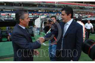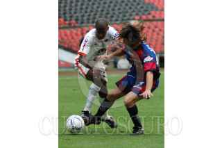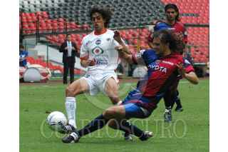 MÉXICO, D.F. 29OCTUBRE2005.- Everaldo Barbosa (Jaguares)diisputa un balón con Daniel Alcántar (Atlante) en el partido de la jornada 14 del torneo de apertura 2005 en el que Atlante y Chiapas empataron a un gol en el Estadio Azteca. FOTO: Iván Stephens/CUARTOSCURO.COM