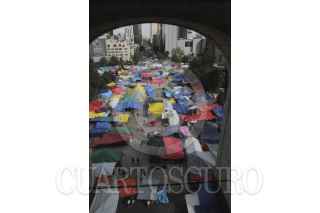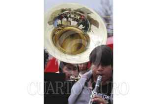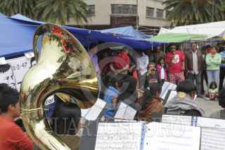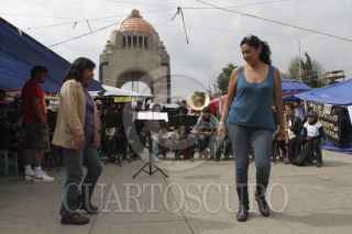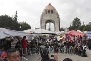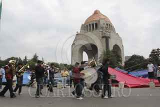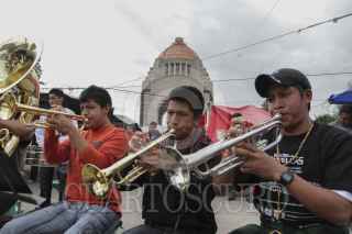 MÉXICO D.F., 10NOVIEMBRE2013.- Integrantes de una banda Mixe ofrecieron un concierto en el plantón que mantiene los maestros integrantes de la Coordinadora Nacional de Trabajadores del Estado (CNTE) en el Monumento al Revolución . FOTO: GUILLERMO PEREA /CUARTOSCURO.COM