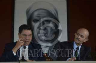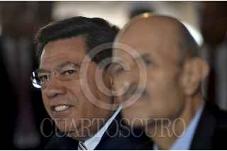 MORELIA, MICHOACÁN, 11NOVIEMBRE2013.- Fausto Vallejo Figueroa, gobernador del estado, integró de nuevo a Jesús Reyna García, como secretario de gobierno, quien hasta el pasado 22 de octubre fungió como gobernador interino. El anuncio fue hecho en la Casa de Gobierno. FOTO: ALAN ORTEGA /CUARTOSCURO.COM