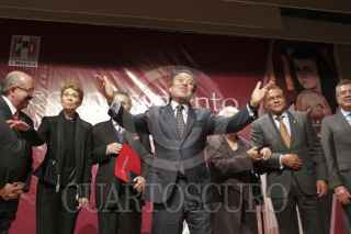 MÉXICO, D.F., 12NOVIEMBRE2013.- César Camacho Quiroz, Presidente nacional del PRI, encabezo la ceremonia de la premiación de los ganadores del Primer Reconocimiento “Sor Juana Inés de la Cruz" en el Museo Franz Meyer. Los galardonados al reconocimiento fueron, en letras, Dolores Castro Varela en arte, Teodoro Cano García Enrique Bátiz Campbell y en ciencias, Gerardo Jiménez Sánchez. FOTO: CUARTOSCURO.COM