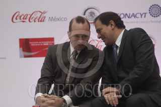 MÉXICO, D.F., 13NOVIEMBRE2013.- Francisco Crespo, presidente de la Coca Cola México y Fernando Ponce Díaz, presidente del consejo directivo de la Asociación de Embotelladoras México de Coca Cola, en la entrega del Premio Nacional de Ciencia y Tecnología en Alimentos en la vieja casona de Xicotencatl. FOTO: CUARTOSCURO.COM