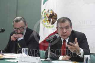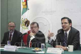 MÉXICO D.F., 13NOVIEMBRE2013.- Mario di Costanzo Armenta, titular de la CONDUSEF, acompañado de Aurelio Aleman, director de informática y telecomunicaciones de la CONDUSEF y Luis Fabre Pruneda, vicepresidente técnico, en conferencia de prensa para dieron detalles para conocer los métodos de protección y ahorro previo a las compras del "Buen Fin". FOTO: SAÚL LÓPEZ / CUARTOSCURO.COM