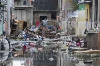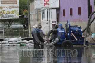 TIXTLA, GUERRERO, 13NOVIEMBRE2013.- Después del paso de las precipitaciones tropicales Ingrid y Manuel, en algunas zonas de Tixtla, como el barrio del Santuario, aún continúan los trabajos de limpieza y de bombeo de agua. FOTO: JOSÉ I. HERNÁNDEZ /CUARTOSCURO.COM