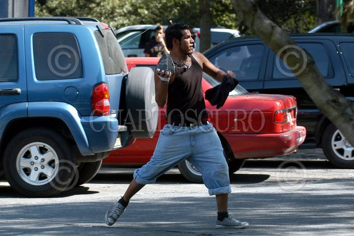 MEXICO, D.F. 30OCTUBRE2005.- Policias granaderos detienen a un joven integrante de una de las porras de los Pumas que al termino del encuentro contra el America protagonizaron un altercado en las inmediaciones del estadio universitario. FOTO: Miguel Dimayuga/CUARTOSCURO.COM