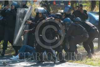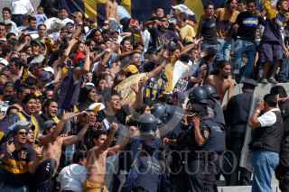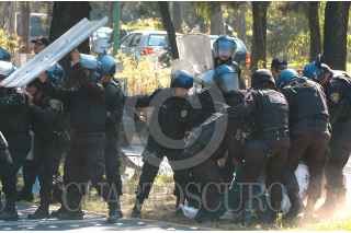 MEXICO, D.F. 30OCTUBRE2005.- Policias granaderos detienen a un joven integrante de una de las porras de los Pumas que al termino del encuentro contra el America protagonizaron un altercado en las inmediaciones del estadio universitario. FOTO: Miguel Dimayuga/CUARTOSCURO.COM