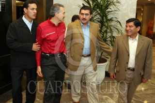 MONTERREY, NUEVO LEON30OCTUBRE2005.- Jesús Silverio Cavazos, gobernador de Colima, Mario Marín, gobernador de Puebla, Roberto Madrazo, precandidato del PRI a la presidencia de la República e Ismael Hernández Deráz, gobernador de Durango sostuvieron una reunión. FOTO: Juan Flores/CUARTOSCURO.COM