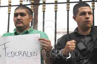 MÉXICO D.F; 15NOVIEMBRE2013.- Policías Federales, se manifestaron en las afueras e la Secretaría de Gobernación, por el supuesto despido injustificado por parte de esta secretaria. Por lo que exigen su reinstalación. FOTO: LUISCARBAYO /CUARTOSCURO.COM