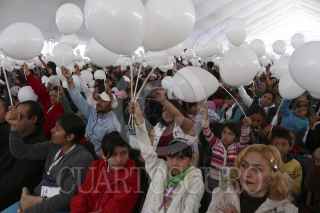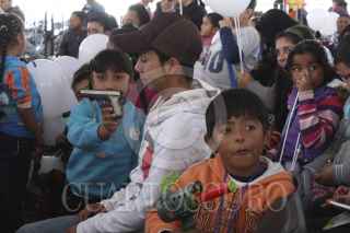 MEXICO, D.F., 16NOVIEMBRE2013.- Niños del Distrito Federal acudieron al evento organizado por el Non Violence Project para cambiar juguetes bélicos por balones de fútbol, llevado a cabo en el zócalo capitalino. FOTO: DAVID POLO /CUARTOSCURO.COM