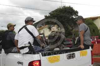 PAREO,TANCITARO MIHOACÁN. 16NOVIEMBE2013.- Grupos de autodefensa a su entrada al municipio de Tancitaro. El día de hoy grupos de autodefensa tomaron este municipio como parte de su plan de expulsión del crimen organizado por diversos municipios de la denominada Tierra Caliente, durante la toma del pueblo se registraron enfrentamientos entre los comunitarios, miembros del crimen organizado y las fuerzas armadas. La información oficial habla de que dos personas perdieron la vida durante los enfrentamientos, y que no se sabe a que organización pertenecen. FOTO: JUAN JOSÉ ESTRADA SERAFÍN /CUARTOSCURO.COM