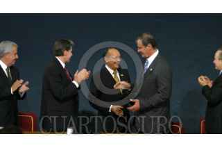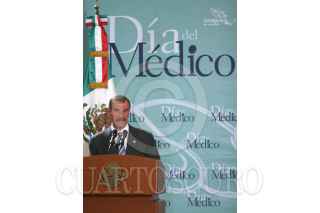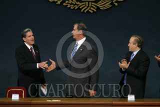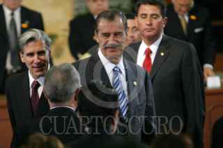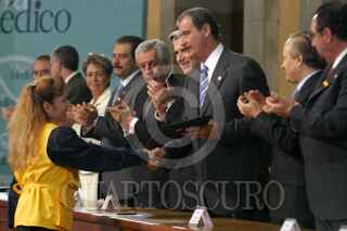 MEXICO, D.F. 31OCTUBRE2005.- Julio Frenk Mora, secretario de Salud y el presidente Vicente Fox altermino de la ceremonia conmemorativa del Día del Médico. FOTO: Nelly Salas/CUARTOSCURO.COM