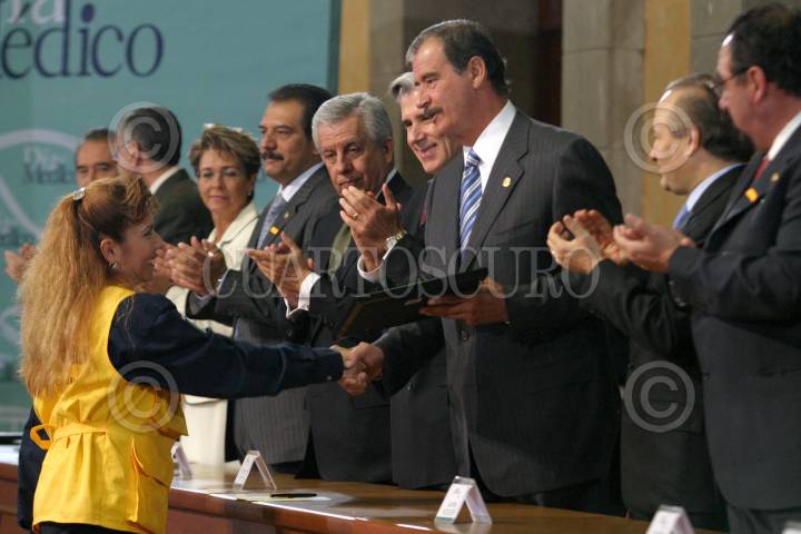 MEXICO, D.F. 31OCTUBRE2005.- Julio Frenk Mora, secretario de Salud y el presidente Vicente Fox altermino de la ceremonia conmemorativa del Día del Médico. FOTO: Nelly Salas/CUARTOSCURO.COM