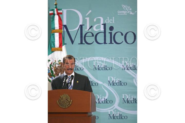 MEXICO, D.F. 31OCTUBRE2005.- Julio Frenk Mora, secretario de Salud y el presidente Vicente Fox altermino de la ceremonia conmemorativa del Día del Médico. FOTO: Nelly Salas/CUARTOSCURO.COM