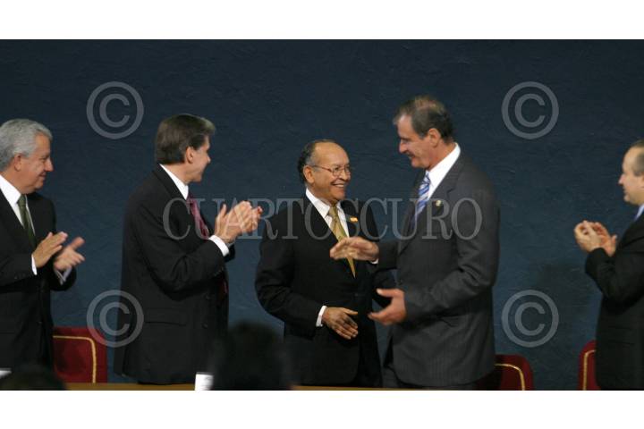 MEXICO, D.F. 31OCTUBRE2005.- Julio Frenk Mora, secretario de Salud y el presidente Vicente Fox altermino de la ceremonia conmemorativa del Día del Médico. FOTO: Nelly Salas/CUARTOSCURO.COM