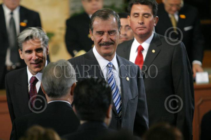 MEXICO, D.F. 31OCTUBRE2005.- Julio Frenk Mora, secretario de Salud y el presidente Vicente Fox altermino de la ceremonia conmemorativa del Día del Médico. FOTO: Nelly Salas/CUARTOSCURO.COM