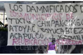 CHILPANCINGO, GUERRERO, 18NOVIEMBRE2013.- Damnificados de distintos municipios de Guerrero, uno de los más afectados por el paso de la tormenta tropical Manuel, se manifestaron en el centro de la capital del estado para exigir al gobierno federal la atención en el caso. Habitantes señalaron que la ayuda ha cesado debido a que las autoridades han dado por cerrado el caso. Rogelio Hernández Godínez, damnificado del municipio de Tixtla, demandó que se entreguen las 199 tarjetas que el gobierno prometió para la adquisición de bienes domésticos. FOTO: JOSÉ I. HERNÁNDEZ / CUARTOSCURO.COM