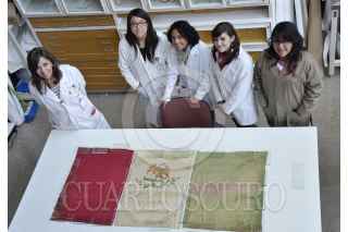 MÉXICO. D.F., 19NOVIEMBRE2013.- En el INAH se llevarón a cabo trabajos de restauración para lábaro patrio que fue fabricado con motivo de la Fundación de la División del Norte. La pieza sirvió de estandarte en varias batallas hasta que fue tomada por las tropas constitucionalistas de Álvaro Obregón FOTO: INAH / CUARTOSCURO.COM