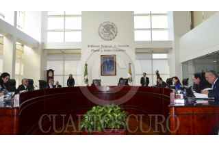 MÉXICO, DF, 20NOVIEMBRE2013.- Juan Manuel Jiménez Illescas, presidente magistrado del Tribunal Federal de Justicia Fiscal y Administrativa durante la resolución al caso de las indígenas otomíes de Querétaro, Teresa González Cornelio y Alberta Alcántara Juan, detenidas en 2006 y encarceladas por el presunto secuestro de seis agentes de la AFI en ese mismo año. Después de permanecer tres años en la cárcel fueron liberadas y declaradas inocentes. Sometieron una demanda en contra de la Procuraduria General de la República y solicitaron la indemnización correspondiente, cantidad que hasta hoy en la mañana, de acuerdo con lo resuelto por el magisterio, se acercaba a los 200 mil pesos. El magisterio declaró el fallo a favor de la indemnización para reparar el daño a los derechos humanos de las indígenas otomíes. FOTO: MARÍA JOSÉ MARTÍNEZ / CUARTOCURO.COM