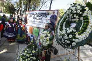 MÉXICO, D.F., 20NOVIEMBRE2013.- Natasha López y la senadora del PAN, Luisa María Calderón, durante un homenaje póstumo al doctor Ygnacio López Mendoza, presidente municipal del Ayuntamiento de Santa Ana Maya, Michoacán, quien fuera encontrado muerto el pasado 7 de noviembre y que presuntamente fue asesinado por el crimen organizado. En el homenaje estuvieron presentes familiares y amigos y se realizo en la esquina de Insurgentes Centro y el Paseo de la Reforma en donde días antes había realizado una huelga de hambre. FOTO: RODOLFO ANGULO /CUARTOSCURO.COM