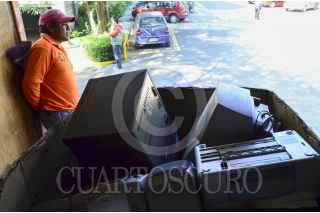 MÉXICO, DF, 21NOVIEMBRE2013.- Los días 21 y 22 de noviembre la jornada para el acopio y recolección de residuos electrónicos "Reciclatrón" estará instalada en el estacionamiento de la Universidad Panamericana, ubicada al sur de la Ciudad en la delegación Tlalpan. La meta es llenar el tráiler con aproximadamente 17 toneladas. El programa ya había visitado otras delegaciones, parques y universidades como el Bosque de Tlalpan, el de Chapultepec, el Parque de los Coyotes de la delegación Coyoacán, Deportivo San Juan de Aragón, el Instituto Politécnico Nacional y Ciudad Universitaria de la UNAM, institución que lleva el récord de con más de 36 toneladas de residuos electrónicos recolectados. FOTO: MARÍA JOSÉ MARTÍNEZ / CUARTOSCURO.COM