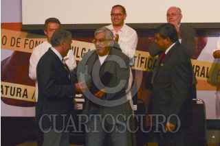 VILLAHERMOSA, TABASCO, 21NOVIEMBRE2013.-Momentos en donde el jurado y galardonados del Premio Nacional de Periodismo 2012 se toman la foto del recuerdo, el cual tuvo lugar en el CIVE de la UJAT. FOTO: MARCO POLO GUZMÁN HERNÁNDEZ /CUARTOSCURO.COM