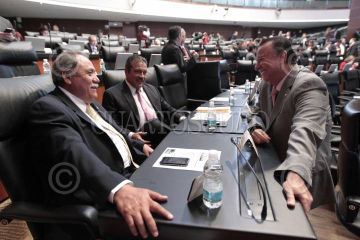 MÉXICO, D.F., 21NOVIEMBRE2013.- Los senadores Manuel Camacho Solís y José Ascencio Orihuela Barcenas, durante la sesión ordinaria del Senado de la República. FOTO: SENADO /CUARTOSCURO.COM