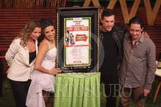MÉXICO, D.F., 22NOVIEMBRE2013.- La actriz Ludwika Paleta Paciorek, Dalilah Polanco, Sergio Mayer y Jaime Matarredona develaron la placa de la representación 200 de la obra teatral "Defendiendo a la Mujer Cavernicola" realizada en el teatro renacimiento. FOTO: SAÚL LÓPEZ /CUARTOSCURO.COM
