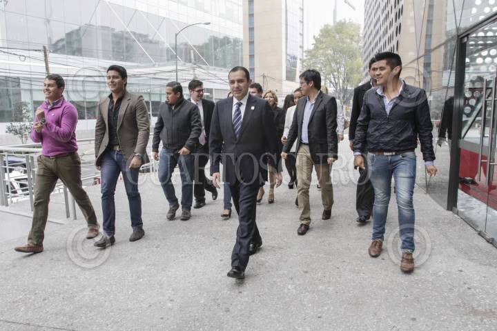 MÉXICO, D.F., 24NOVIEMBRE2013.- El senador Ernesto Cordero Arroyo rindió su Primer Informe de Actividades Legislativas en un centro de espectáculos en la colonia Nápoles. En la imagen, el legislador saluda a Jorge Luis Preciado, coordinador de la bancada del PAN en el Senado de la República. FOTO: ISAAC ESQUIVEL /CUARTOSCURO.COM