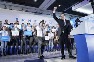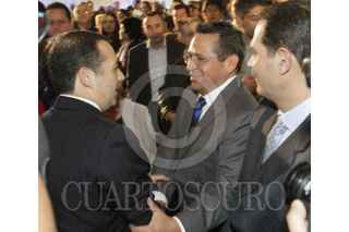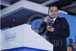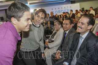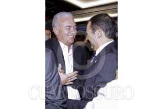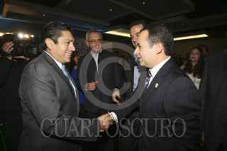 MÉXICO, D.F., 24NOVIEMBRE2013.- El senador Ernesto Cordero Arroyo rindió su Primer Informe de Actividades Legislativas en un centro de espectáculos en la colonia Nápoles. En la imagen, el legislador saluda a Jorge Luis Preciado, coordinador de la bancada del PAN en el Senado de la República. FOTO: ISAAC ESQUIVEL /CUARTOSCURO.COM