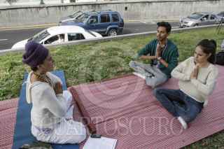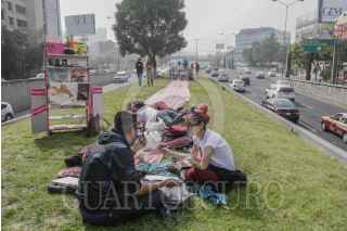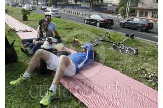 MÉXICO, D.F., 24NOVIEMBRE2013.- Un grupo de ambientalistas realizaron un picnic sobre el Viaducto Miguel Alemán, a la altura de Insurgentes, para manifestar su deseo de que esta vialidad de pueda volver un río vivo. FOTO: ISAAC ESQUIVEL /CUARTOSCURO.COM