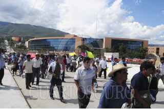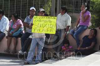 CHILPANCINGO, GUERRERO, 25NOVIEMBRE2013.- Campesinos de Tilapa marcharon por las principales calles de Chilpancingo hasta llegar a la entrada del palacio de gobierno para exigir una audiencia con el ejecutivo del estado y solicitar se cumplan los acuerdos hechos el 18 de septiembre del 2012 con el entonces secretario de Gobierno, Humberto Salgado Gómez, de un conflicto agrario entre Tierra Colorada y Tilapa. Además pidieron ayuda para las 468 familias afectadas por las precipitaciones tropicales Ingrid y Manuel. FOTOS: JOSÉ I. HERNÁNDEZ /CUARTOSCURO.COM