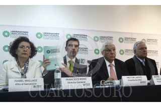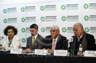 MÉXICO, D.F. 26NOVIEMBRE2013.- Isabel Wallace de Alto al Secuestro; Francisco Rivas, director general de Observatorio Nacional Ciudadano; Héctor Larios, presidente de Observatorio Nacional Ciudadano y Alejandro Martí de México SOS durante la presentación del estudio de los 6 delitos de alto impacto correspondiente al octavo mes de este año que se realizó en Casa Lamm. FOTO: RODOLFO ANGULO /CUARTOSCURO.COM