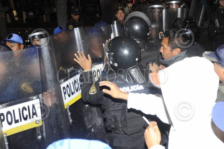 MÉXICO D.F; 26NOVIEMBRE2013.- En Reforma y Bucareli, maestros de la CNTE nuevamente intentaron bloquear, por lo que se registro una pequeña riña entre estos. Según informo personal médico, que en el lugar fueron trasladados dos uniformados por lesiones de arma blanca. FOTO: LUIS CARBAYO /CUARTOSCURO.COM