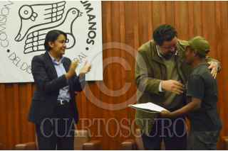 MÉXICO, DF, 27NOVIEMBRE2013.- Pedro Gatica Estrada, ganador del reconocimiento Ponciano Arriaga. La Comisión de Derechos Humanos del DF (CDHDF) entregó el reconocimiento “Ponciano Arriaga 2013” a Carlos Alberto Cruz Santiago, coordinador y promotor de proyectos enfocados a los jóvenes y en apoyo a los Derechos Humanos a nivel nacional; y Pedro Gatica Estrada, indígena tlapaneco acusado de homicidio a los 16 años, cuyo proceso penal duró 12 años. FOTO: MARÍA JOSÉ MARTÍNEZ / CUARTOSCURO.COM