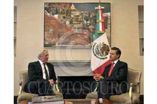 MÉXICO, D. F., 29NOVIEMBRE2013.- Enrique Peña Nieto, presidente de México recibió hoy en la Residencia Oficial de Los Pinos al destacado escritor peruano, Premio Nobel de Literatura, Mario Vargas Llosa, quien se encuentra en México para atender distintas actividades relacionadas con la promoción de su nueva obra. FOTO: PRESIDENCIA / CUARTOSCURO.COM