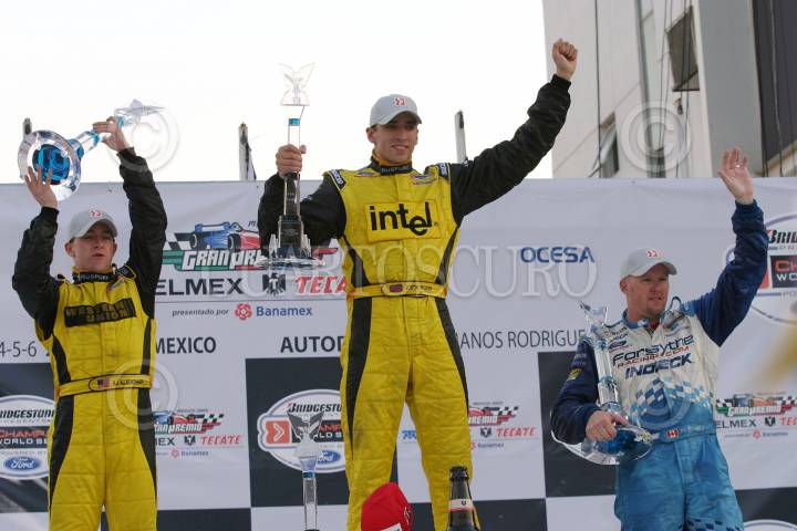 MÈXICO D.F.-06NOVIEMBRE2005.- Festejo de los tres primeros lugares en la gran final de automovilismo Champ Car que se dio hoy en el Autòdromo Hnos. Rodriguez FOTO: Ivan Stephens/CUARTOSCURO.COM