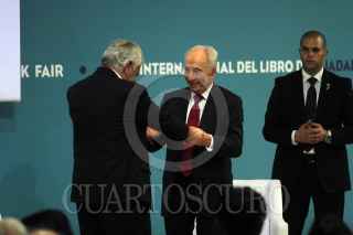 GUADALAJARA, JALISCO, 30NOVIEMBRE2013.-Esta noche en el marco de la edición 27 de la Feria Internacional del Libro de Guadalajara, el Presidente de Israel Shimón Peres participó en diálogo con Felipe González, ex-presidente de España. FOTO: FERNANDO CARRANZA GARCÍA /CUARTOSCURO.COM
