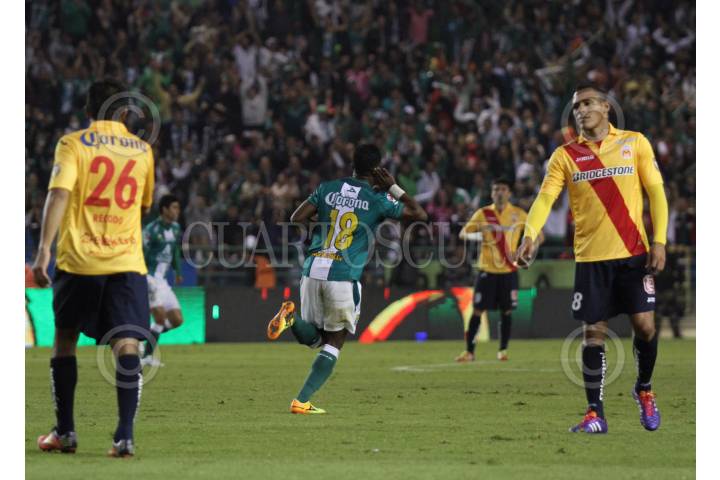 LEÓN, GUANAJUATO, 30NOVIEMBRE2013.- Encuentro de fútbol entre el León y Morelia, como parte de la liguilla del torneo Apertura 2013. Los esmeraldas de León golearon 4 por 0 y ganaron la eliminatoria 7 por 3. FOTO: ADOLFO VLADIMIR /CUARTOSCURO.COM