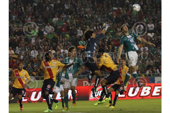 LEÓN, GUANAJUATO, 30NOVIEMBRE2013.- Encuentro de fútbol entre el León y Morelia, como parte de la liguilla del torneo Apertura 2013. Los esmeraldas de León golearon 4 por 0 y ganaron la eliminatoria 7 por 3. FOTO: ADOLFO VLADIMIR /CUARTOSCURO.COM