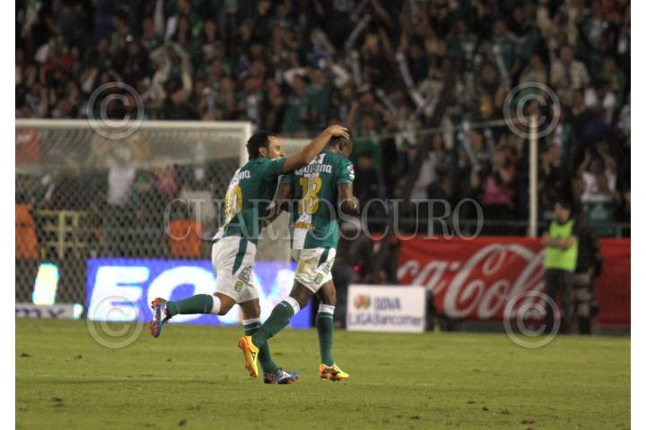 LEÓN, GUANAJUATO, 30NOVIEMBRE2013.- Encuentro de fútbol entre el León y Morelia, como parte de la liguilla del torneo Apertura 2013. Los esmeraldas de León golearon 4 por 0 y ganaron la eliminatoria 7 por 3. FOTO: ADOLFO VLADIMIR /CUARTOSCURO.COM