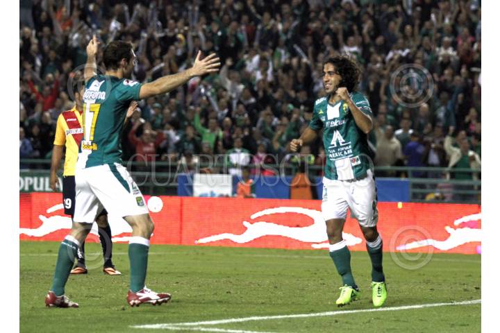 LEÓN, GUANAJUATO, 30NOVIEMBRE2013.- Encuentro de fútbol entre el León y Morelia, como parte de la liguilla del torneo Apertura 2013. Los esmeraldas de León golearon 4 por 0 y ganaron la eliminatoria 7 por 3. FOTO: ADOLFO VLADIMIR /CUARTOSCURO.COM