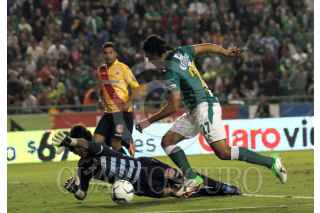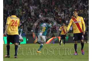 LEÓN, GUANAJUATO, 30NOVIEMBRE2013.- Encuentro de fútbol entre el León y Morelia, como parte de la liguilla del torneo Apertura 2013. Los esmeraldas de León golearon 4 por 0 y ganaron la eliminatoria 7 por 3. FOTO: ADOLFO VLADIMIR /CUARTOSCURO.COM