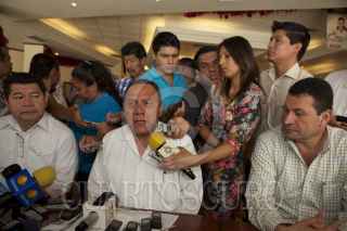 VILLAHERMOSA, TABASCO, 01DICIEMBRE2013.- Jesús Zambrano Grijalva, dirigente nacional del PRD, ofreció una rueda de prensa, donde llego acompañado de distintos diputados federales. Ahí dijo que la salida del partido del sol azteca del Pacto por México no atiende a consignas, ni acuerdos con Andrés Manuel López Obrador, sino que fue una decisión tomada al interior del Consejo, debido a que este pacto no se están cumpliendo en la actualidad. FOTO: MARCO POLO GUZMÁN HERNÁNDEZ /CUARTOSCURO.COM