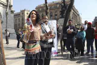MEXICO, D.F., 01DICIEMBRE2013.- Los diputados por parte del PRD, Jesús Zepeda y Dinorah Pizano, repartieron volantes y condones en la explanada del Palacio de Bellas Artes como parte de una campaña para conscientizar a la población, principalmente a los jovenes, acerca de protegerse contra el sida y las enfermedades de transmisión sexual. Señalaron que la incidencia de los casos es mayor entre jóvenes y adolescentes, por lo que su campaña se enfoca a tratar los temas abierta e informadamente entre estos. FOTO: DAVID POLO /CUARTOSCURO.COM