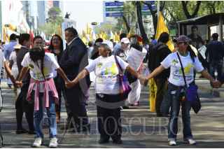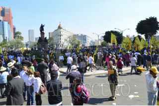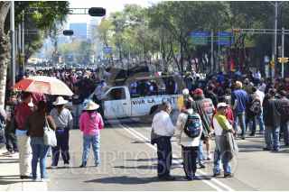 MÉXICO, DF, 03DICIEMBRE2013.- Maestros integrantes de la Coordinadora Nacional de Trabajadores de la Educación (CNTE) establecieron un plantón sobre Reforma a la altura del Senado de la República, para mostrar su inconformidad con respecto a la Reforma Educativa. Al mismo tiempo, simpatizantes del PRD bloquearon la vialidad con la formación de una cadena humana en contra de la Reforma Energética y la privatización del petróleo FOTO: MARÍA JOSÉ MARTÍNEZ / CUARTOSCURO.COM