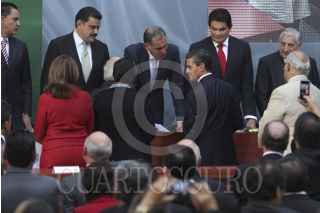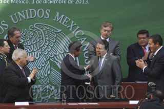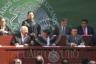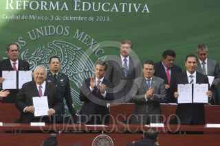 MÉXICO D.F.,03DICIEMBRE2013.- Enrique Peña Nieto, presidente de México, acompañado de los titulares de la SEP, SNTE, gobernadores y rectores de universidades durante la presentación del convenio para la implementación de la reforma educativa, realizado en el patio central de la SEP. FOTO: SAÚL LOPEZ /CUARTOSCURO.COM