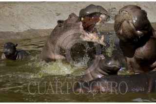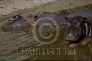 MORELIA, MICHOACAN, 03DICIEMBRE2013.- La madrugada del lunes, nació un Hipopótamo del Nilo, con un peso aproximado de 30 kilos que viene a incorporarse a un grupo de 4 ejemplares más de esta especie, entre los que se encuentran un macho adulto, 2 hembras adultas y una cría más. Los Hipopótamos del Nilo se encuentran en peligro de extinción a causa de la pérdida de su hábitat natural, por la caza furtiva para conseguir su carne, además del marfil de algunas de sus piezas dentales. FOTO: ALAN ORTEGA /CUARTOSCURO.COM