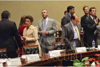 MÉXICO, DF, 04DICIEMBRE2013.- María Marván Laborde asumió el cargo de Consejera Presidente Provisional del Consejo General del Instituto Federal Electoral (IFE) para el periodo comprendido del 4 de diciembre de 2013 al 7 de enero de 2014, durante la sesión extraordinaria en presencia de los consejeros Benito Nacif Hernández, a quien sustituye en el cargo, Lorenzo Córdova y Marco Antonio Baños Martínez, quienes la sucederán en el cargo en respectivo orden. Marván Laborde es la primera mujer en 23 años en ocupar el cargo, quien al momento de la toma de protesta expresó acerca de la reforma político electoral “lamento que los partidos hayan hecho de esta reforma una ficha de cambio en medio de una reforma energética”. FOTO: MARÍA JOSÉ MARTÍNEZ / CUARTOSCURO.COM