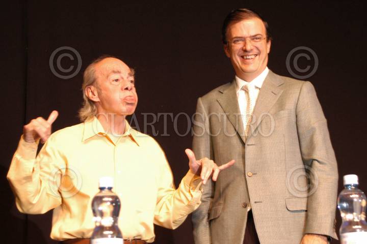 MÉXICO, D.F. 07NOVIEMBRE2005.- Simpatizantes de Marcelo Ebrard, aspirante a la candidatura del D.F., colocaron una lona en el Teatro Aldama al termino de la reunión del aspirante con Productores de Teatro. FOTO:Miriam Sánchez/CUARTOSCURO.COM