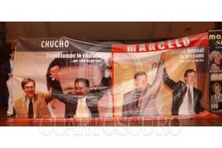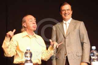 MÉXICO, D.F. 07NOVIEMBRE2005.- Simpatizantes de Marcelo Ebrard, aspirante a la candidatura del D.F., colocaron una lona en el Teatro Aldama al termino de la reunión del aspirante con Productores de Teatro. FOTO:Miriam Sánchez/CUARTOSCURO.COM