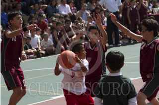 MÉXICO, D.F., 5DICIEMBRE2013.- El equipo de basquetbol de niños triqui de Oaxaca, integrantes de la selección de básquetbol infantil campeones del cuarto Festival Internacional de Minibásquetbol, acudieron a una escuela particular donde participaron en un par de juegos con alumnos de estos institutos. FOTO: GUILLERMO PEREA /CUARTOSCURO.COM